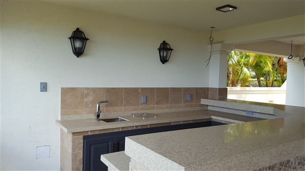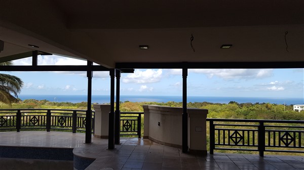Elevated lot with panoramic ocean and countryside views, offering 4 air-conditioned bedrooms and 5 bathroom house The upper level 2 bedrooms 2 bathrooms, an open-plan living & dining room, a well equipped kitchen with all modern appliances a pantry, storage room. Downstairs offers, two additional bedrooms, 3 bathrooms, a spacious sitting room which looks on to the covered pool deck and wet bar. There is a Gazebo. Pool & garden maintenance are included in the rental price.